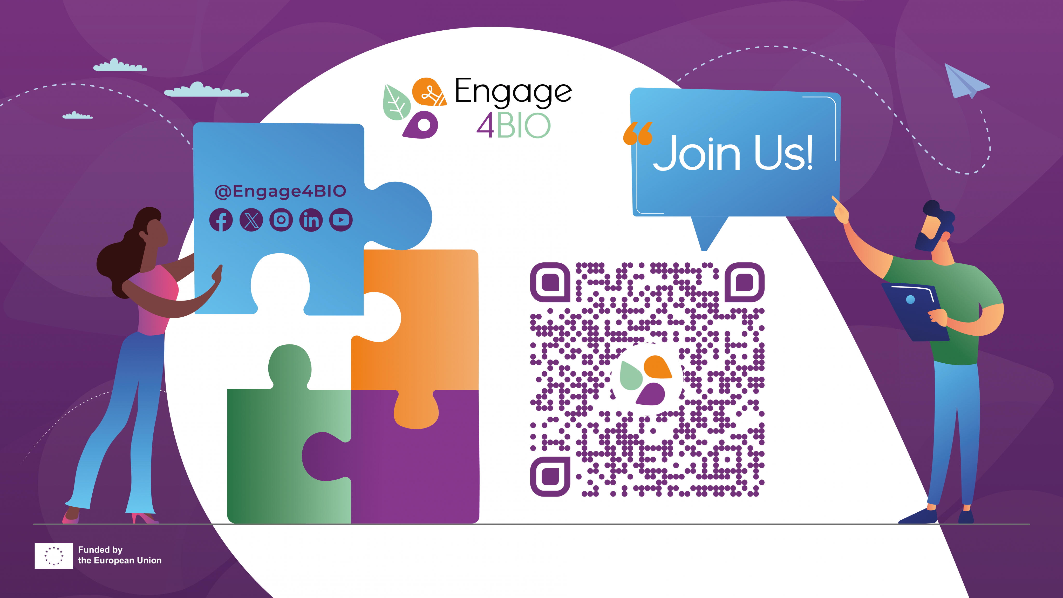 In order to stay updated on the next steps of the open call, follow us on social media (@Engage4BIO on X, Facebook, Instagram, and LinkedIn) and join our community by scanning the QR code below!